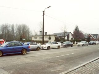 20 subarus doing a 3 point turn in a tight housing estate